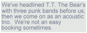 Bear's with three punk bands before us, then we come on as an acoustic
