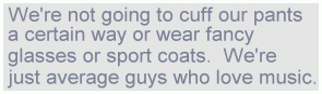 way or wear fancy glasses or sport coats. We're just average guys